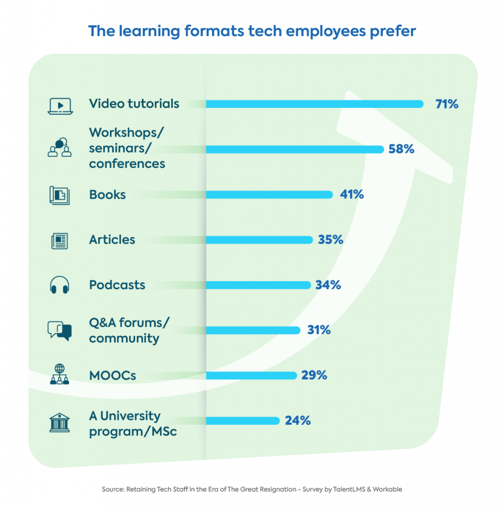 For almost 2 out of 3 employees, it is more learning and training. Combined with L&D opportunities being one of the top criteria for selecting a job, the message is clear: training can help slow down the wave of resignations.