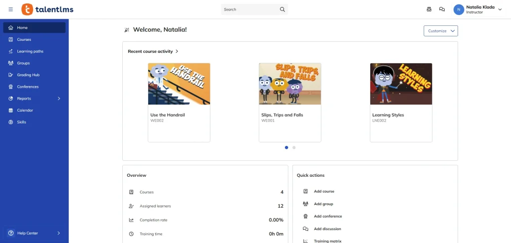 Users have varying levels of permissions on LMS platforms. Consequently, each interface will have certain limitations. For example, a Learner wouldn’t be able to create courses, while an Admin or an Instructor could. While Admins have a holistic view of the platform, instructors have access to specific content creation capabilities and reporting.